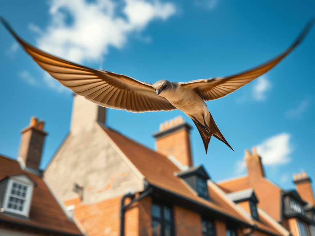 On their return to the UK in April or May they visit the nest sites they used in previous years. Mostly these are small cracks or holes in buildings which allow access to space under eaves, soffits and tiles. They do no damage as they rear their brood which is usually just a couple of chicks. The young fledge after 5-8 weeks, flying straight from the nest, and then not touching down again until breeding at around 4 years old.